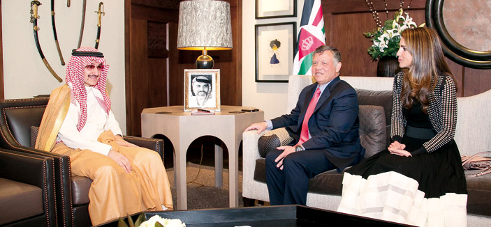 ومن ثم توجه الأمير الوليد لقصر الحسينية حيث التقى بجلالة الملك الأردني عبدالله الثاني بن الحسين وصاحبة الجلالة الملكة رانيا العبدالله في اجتماع خاص، حيث تناولوا عدداً من المواضيع الهامة وآخر التطورات على الصعيدين الدولي والإقليمي، بالإضافة إلى استثمارات شركة المملكة القابضة في الأردن.