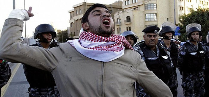 أعلن مسؤولون وشهود عيان أمس الخميس أن عشرات المتظاهرين أضرموا النيران في ثلاثة بنوك وأحد المباني الحكومية بمدينة معان جنوبي الأردن، وذلك احتجاجاً على قتل الشرطة لأحد الأشخاص أثناء اشتباكات. وأوضح جهاز الأمن العام إن حوالي 200 متظاهر مناوئ للحكومة شاركوا في أعمال الشغب التي بدأت أمس الأربعاء.
