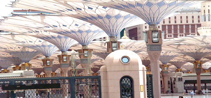 وصنعت هذه المظلات خصيصا لساحات المسجد على أحدث تقنية وبأعلى ما يمكن من الجودة والإتقان وتغطي المظلة الواحدة ما مساحته(576) متراً مربعا ويستفيد منها أكثر من (200) ألف مصل إضافة إلى تنفيذ مشروع الساحة الشرقية للمسجد النبوي الشريف وبمساحة تبلغ (37) ألف متر مربع وستستوعب أكثر من(70) ألف مصل وسيستفيد المشروع من تنفيذ مواقف للسيارات والحافلات في بدروم المشروع يستوعب لأكثر من أربعمائة وعشرين سيارة وسبعين حافلة كبيرة كما تضمنت الأعمال المنفذة على دورات مياه مخصص معظمها للنساء ومواقف مخصصة لتحميل وإنزال الركاب من الحافلات والسيارات وتنفيذ مداخل ومخارج مواقف السيارات بالمسجد النبوي واشتمل ذلك تنفيذ ثلاثة أنفاق لربط مواقف السيارات بطريق الملك فيصل الدائري الأول.