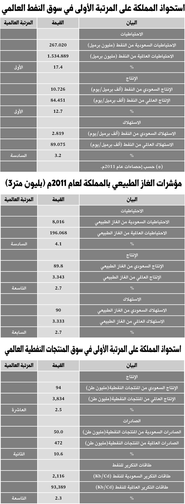 الكل يعلم أن المملكة دولة نفطية، إلا أن القليلين هم الذين يدركون مدى المراتب التي تحتلها المملكة في عرش مصادر الطاقة الرئيسية: