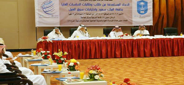 نظمت عمادة الدراسات العليا بجامعة الملك سعود ورشة عمل لقياس الاحتياج الحقيقي لطلاب وطالبات الدراسات العليا في سوق العمل ورعى هذه الورشة وكيل الجامعة للدراسات العليا والبحث العلمي الأستاذ الدكتور أحمد بن سالم العامري وكانت تحت عنوان « الأعداد المستهدفة من طلاب وطالبات الدراسات العليا بجامعة الملك سعود واحتياجات سوق العمل» وشارك في الورشة أربع جهات حكومية هي وزارة الاقتصاد والتخطيط ووزارة العمل ووزارة الخدمة المدنية ووزارة الصحة واستعرضت الجهات المشاركة جميع ما يتعلق بالاحتياج لتوطين الوظائف المستهدفة والتي تتناسب مع مؤهلات طلاب وطالبات الدراسات العليا , وما هي أهم الفرص المتاحة لهم حاليا ومستقبلا.