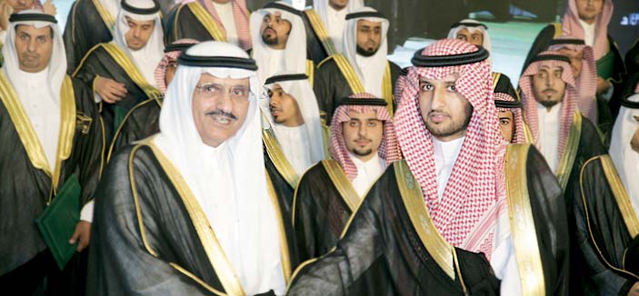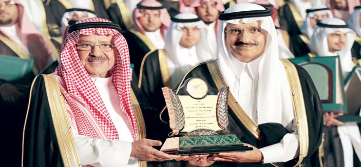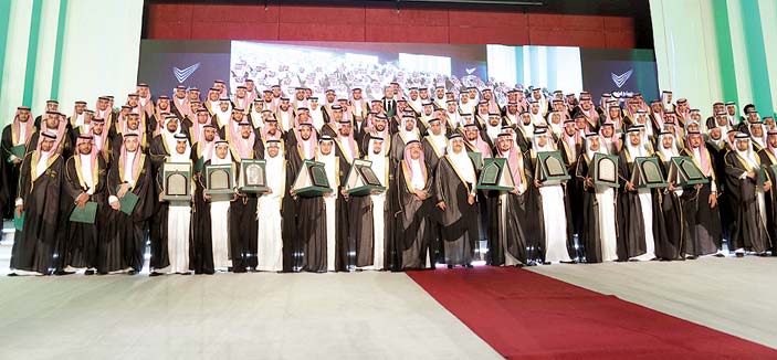 وبعد استعراض فقرات الحفل قام سموه بتكريم الطلاب الحاصلين على مرتبة الشرف الأولى والثانية والمتفوقين، ومن ثم يوجه كلمة قال فيها سموه: «أهنئ الطلاب وأولياء أمورهم بمناسبة التخرج من هذه الجامعة التي عمرها قصير لكن إنتاجها كبير، حيث تسهم في دفع أبناء هذا الوطن للعمل في شتى المجالات».. متمنياً سموه للجميع التوفيق والنجاح في حياتهم العلمية والعملية.