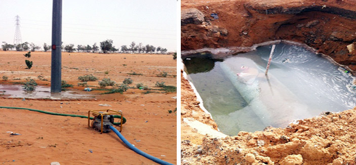 وذلك بسبب عدم إصلاح العطل واكتفاء المقاول بوضع كيس رمل وحجارة على فتحة الماسورة المنكسرة ما ساعد في تسرب المياه بغزارة دون توقف والقيام بسحب المياه من الحفرة العميقة ورميها في العراء بواسطة ماطور لسحب المياه.