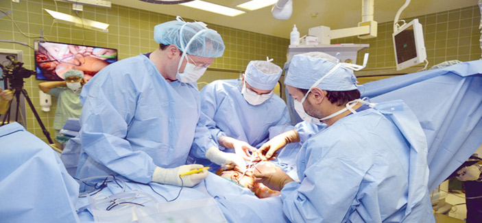 بعدها بدأت المرحلة الثالثة بفتح الجلد وإزالة بعض موسعات الانسجة من خلال فتحة الجمجمة وشارك بها جراحو المخ والأعصاب .
