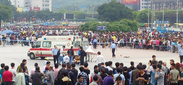 - قالت الشرطة الصينية إن ستة أشخاص أصيبوا في هجوم بالسكاكين على محطة قطارات في مدينة قوانغتشو في جنوب الصين أمس الثلاثاء في أحدث سلسلة لمثل هذه الهجمات التي أثارت توترات في مختلف أنحاء البلاد. ولم تقدم الشرطة أي سبب للهجوم ... رويترز