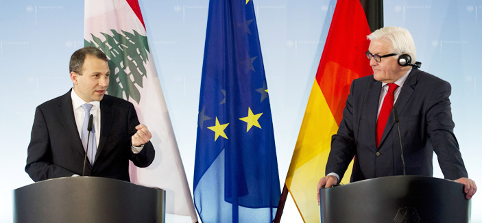 - وزير الخارجية الألماني فرانك والتر بجانب وزير خارجية لبنان جبران بسيل في مؤتمر صحفي عقد في وزارة الخارجية الألمانية في برلين ... أ ف ب