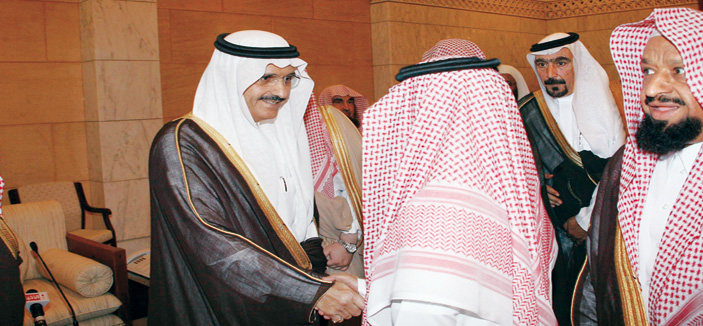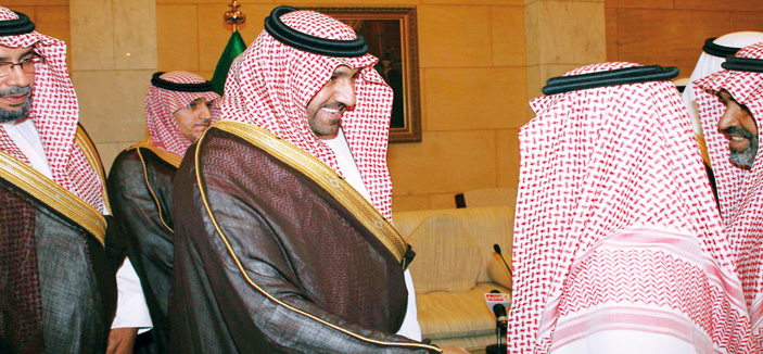 استقبل صاحب السمو الملكي الأمير خالد بن بندر بن عبد العزيز أمير منطقة الرياض وصاحب السمو الملكي الأمير تركي بن عبد الله بن عبد العزيز نائب أمير منطقة الرياض في قصر الحكم أمس أصحاب الفضيلة العلماء وأصحاب المعالي وعددًا من المسؤولين وجمعًا من المواطنين.