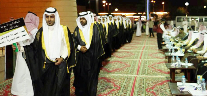 وهنأ وكيل عمادة القبول والتسجيل الدكتور محمد الشهراني، الطلاب والطالبات الخريجين ، منهم (20) طالباً حصلوا على مرتبتي الشرف الأولى والثانية، ثم اختتم الحفل بتوزيع شهادات التقدير للطلبة المتفوقين.