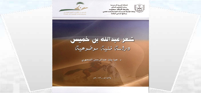 عن جامعة الملك سعود صدر كتاب: (شعر عبد الله بن خميس دراسة فنية موضوعية) تأليف الدكتورة هيا بنت عبد الرحمن السهري..