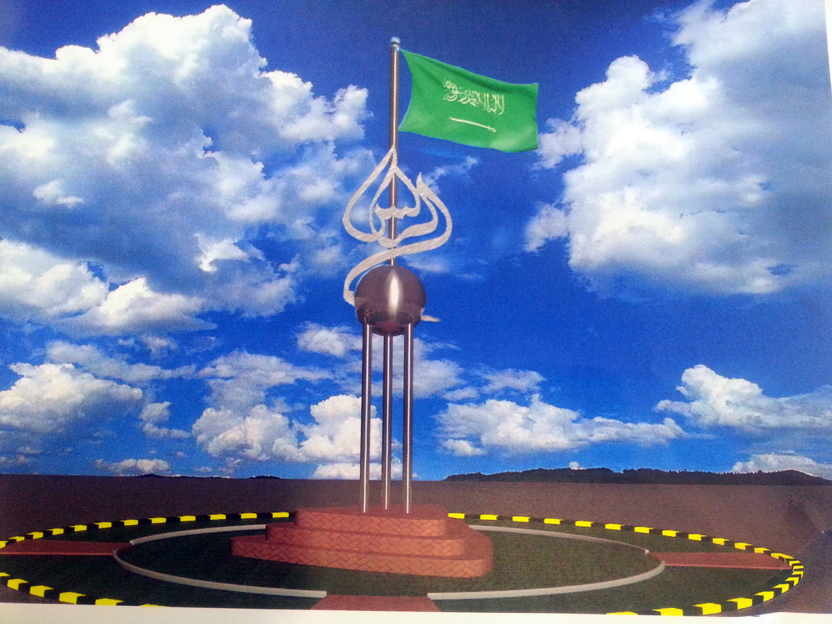 ومن أشكال المجسمات التي ستنفذ قريباً عبارة اسم الرس, وعلم المملكة راية التوحيد.