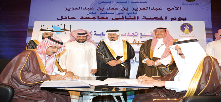 برعاية كريمة من صاحب السمو الملكي الأمير عبدالعزيز بن سعد بن عبدالعزيز نائب أمير منطقة حائل وبحضور وكيل إمارة منطقة حائل الدكتور سعد بن حمود البقمي وقع معالي مدير جامعة حائل سعادة الدكتور خليل بن إبراهيم البراهيم ورئيس تحرير جريدة الجزيرة الأستاذ خالد بن حمد المالك عقد تجديد كرسي الجزيرة للدراسات الصحفية في التنمية الحضرية بجامعة حائل لخمس سنوات قادمة، استمراراً في ريادته في تقديم خدمات بحثية واستشارية وتدريبية متخصصة في مجال الإعلام والتنمية الثقافية والاجتماعية.