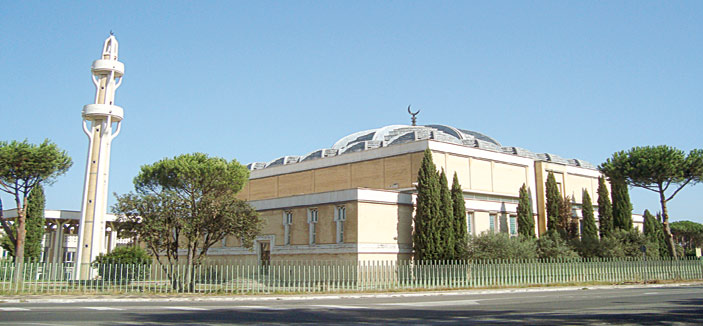 - كما يعلم الجميع فإنّ المملكة العربيَّة السعوديَّة سعت إلى الحصول على موافقة لإقامة أول مركز إسلامي ومسجد في روما منذ منتصف الستينات من القرن الماضي وقد تحقق ذلك خلال زيارة جلالة الملك فيصل بن عبد العزيز -رحمه الله- لإيطاليا عام 1973م وتفضلت بلدية روما بتقديم قطعة أرض بمساحة 30 ألف متر مربع لإنشاء المركز الإسلامي والمسجد الكبير عليها وتحملت المملكة أكثر من 70 في المئة من تكاليف إنشاء هذا الصرح الإسلامي الذي يُعدُّ أكبر مركز إسلامي في أوروبا ومنذ افتتاحه عام 1995م إلى اليوم تقوم حكومة المملكة بتمويله بميزانية سنوية عبر رابطة العالم الإسلامي وكل هذا هو لوجه الله تعالى وخدمة للمسلمين في هذه البلاد العريقة. وكما سبق أن ذكرت لك أن من بين الخدمات التي تقدمها المملكة لأبناء الجالية العربيَّة والإسلاميَّة هي افتتاح مدرسة الملك عبد العزيز بروما للمساهمة في تنشئة أبناء الجالية المسلمة التنشئة العربيَّة الإسلاميَّة من خلال ترسيخ القيم العربيَّة الأصيلة ومبادئ الدين الإسلامي الحنيف. كما نقوم بتوزيع نسخ من المصحف الشريف بكلِّ اللغات لمن يطلبها من المسلمين وهي من طباعة مجمع الملك فهد لطباعة المصحف الشريف بالمدينة المنورة.