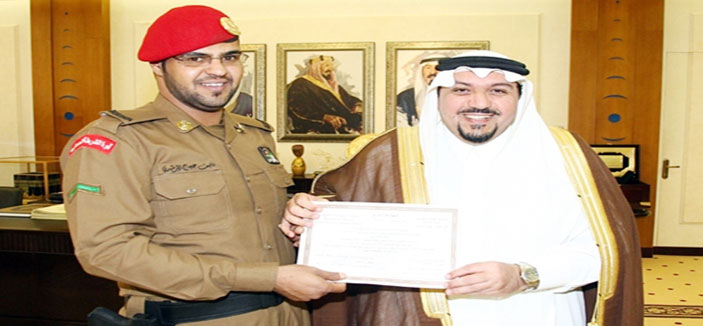 وقد هنأه سموه وشكره على هذا التميز وتمنى له المزيد من العون والتوفيق، وأن يكون هذا التميز دافعاً له ولكافة زملائه لتحقيق كل ما يصبون إليه لخدمة وطننا الغالي.