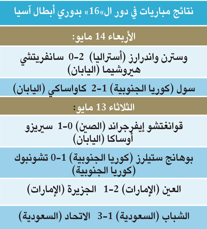 كما حجز سيول الكوري الجنوبي وصيف بطل الموسم الماضي مقعده في الدور ربع النهائي من المسابقة رغم سقوطه على أرضه أمام كاوازاكي فرونتال الياباني 1-2 أمس الأربعاء في إياب الدور ثمن النهائي.