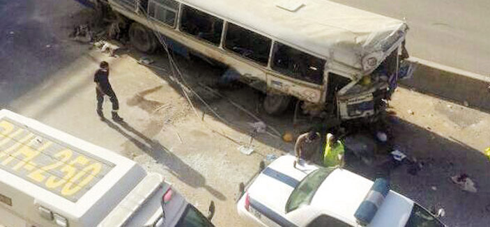 وأشار العقيد الحسن أنه تم رفع الحادث واستكمال إجراءاته حيث تم طلب جميع الجهات الأمنية ذات العلاقة ورفع عينات من البصمات وكذلك الكشف على الحافلة للتأكد من عدم وجود أي احتكاك فى المركبة كما تم تحميل سائق الحافلة الحادث بواقع 100%، لافتا أنه نتج عن الحادث وفاة السائق وإصابة 60 راكبا وتم نقل المصابين عن طريق الهلال الأحمر وتم توزيع الحالات على عدة مستشفيات، منها مستشفى الجامعي 9 حالات ومستشفى دلة 11 حالة ومستشفى الألماني 3 حالات ومستشفى الشميسي 12 حالة ومستشفى الإيمان 4 حالات ومستشفى الأمير سلمان 6 حالات ومستشفى المملكة 7 حالات ومستشفى أبانمي 4 حالات ومستشفى المشاري 4 حالات ولازال الحادث تحت الإجراء لاستكمال تقرير المصابين.