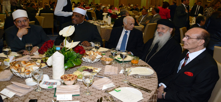 واختتم معاليه كلمته بالإشارة إلى المكانة الخاصة التي تحظى بها جمهورية مصر العربية في وجدان خادم الحرمين الشّريفين والّتي يشعر بها كلّ سعوديّ ومصريّ وعربيّ، مشيراً إلى خطابه التاريخي بعد ثورة 30 يونيو 2013 والتي أكد فيها وقوفه قلباً وقالباً مع مصر ورفضه التدخل في شؤونها الداخلية وفي كلمته قال المهندس إبراهيم محلب رئيس الوزراء، إن القيادة الحكيمة لخادم الحرمين الملك عبدالله بن عبدالعزيز وضعت الأمة العربية على الطريق الصحيح وأهمت بقوة في لحظة حاسمة من تاريخها في صد الأخطار التي كانت تهدد كيانها وتماسكها ووجودها، حيث وقفت السعودية بكل أركانها ومقوماتها حائطا صلباً وسداً منيعاً في الدفاع عن أمتها العربية، وخاصة محاولات استهداف مصر وأمنها وجيشها الباسل الأبي الذي كان وسيظل درع الأمة وسيفها وشوكة قوية في حق أعدائها مشدداً على أن أمن مصر لا ينفك عن أمن الأشقاء العرب مؤكداً أن مصر لم ولن تنسى كل من ساندها ووقف إلى جانبها في اللحظات العصيبة التي مرت بها وهي مؤهلة وقادمة بخطوة ثابتة بما تملك من مقومات بشرية وطبيعية واقتصادية وأكد رئيس الوزراء في الكلمة التي ألقاها نيابة عنه وزير الأوقاف الدكتور محمد مختار جمعة أن الحكومة تسعى لفتح آفاق الاستثمار خاصة أمام الأشقاء العرب، وجادة في إنهاء أي مشكلات عالقة في الماضي لبعض المستثمرين مع العمل الجاد لتهيئة مناخ الاستثمار ومن جانبه قال الدكتور أحمد الطيب شيخ الأزهر في كلمته والتي ألقاها نيابة عنه الدكتور عباس شومان إن السعودية في عقل وقلب كل مصري بل هي شقيقة وغالية وامتداد طبيعي لكل ما يعبر عن العراقة العربية وحضارتها ولا يمكن أن ننسى للمملكة وقائدها الأصيل خادم الحرمين الشريفين الملك عبدالله بن عبد العزيز مواقفه الإسلامية والعربية التي يعرفها الجميع ضد محاولات ممارسة الهيمنة على أمور مصر الداخلية إبان ثورتي 25 يناير و30 يونيو والجولات الخارجية التي قام بها صاحب السمو الملكي الأمير سعود الفيصل وزير الخارجية لتوضيح حقيقية مجريات الأحداث وإرادة الشعب المصري التي كان لها بالغ الأثر في نفوس المصريين، مشيداً بمواقف خادم الحرمين الشريفين العربية والإسلامية والتي خاضها ويعرفها الناس جميعا وتصب كلها في إيجاد مجتمع عربي يسوده الحب والتعاون والسماحة وفى الختام دعا شيخ الأزهر الله أنه يحمي مصر والمملكة العربية السعودية من كل سوء، كما دعي اللهن يحفظ قواتنا المسلحة الباسلة والشرطة الساهرة على حماية أمن الوطن بدوره أكد الأنبا سرجيوس، نائبا عن البابا تواضروس الثاني بابا الإسكندرية وبطريرك الكرازة المرقسية عمق وقوة العلاقة الإستراتيجية التي تربط البلدين وبما يصب في مصلحة الشعبية والأمة العربية بأسرها وأوضح البابا تواضرس الثاني أن الملك فيصل وقبله أبيه الملك عبد العزيز وكل آل سعود يتمتعون بحكمة بالغة، جمعت الأشقاء العرب معا على قلب رجل واحد للوقوف بجانب مصر كاتما السر متذكرا قول الشاعر «لا يكتم السر إلا من له شرف.. والسر عند كرام الناس مكتوم» كما أثنى البابا تواضروس الثاني على مواقف الملك عبد الله بن عبد العزيز تجاه مصر، مشيداً بدعم الملك ماديا لمصر للمشاركة في حل الأزمة الاقتصادية التي شهدتها مصر على مر الـ3 سنوات الأخيرة، فضلا عن مواقفه السياسية المؤيدة لمطالب الشعب المصري.
