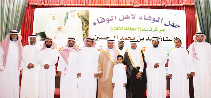 كرمت إدارة التربية والتعليم بالأفلاج بحضور محافظ الأفلاج زيد بن محمد آل حسين ومدير التربية والتعليم محمد بن مبارك الزايد، مدرستي ابن كثير الابتدائية ومتوسطة القادسية، مدرستي الطالب عبدالرحمن بن عبده المتصدق عن زميله والطالب السوداني المتوفى غرقا في أحد المسابح.
