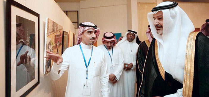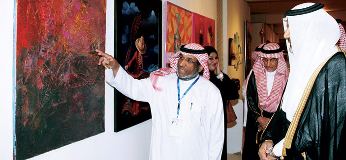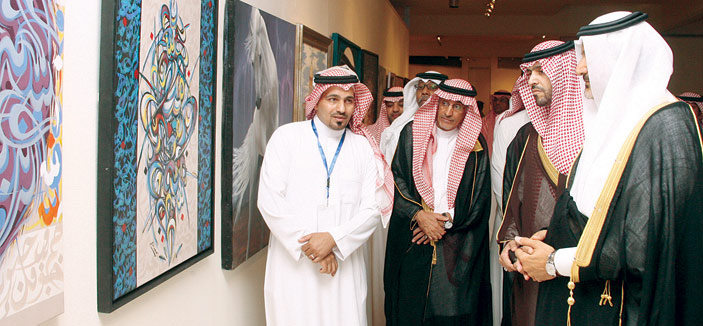 بدء الحفل بعد الترحيب بسمو الأمير فيصل بن محمد وبحضور صاحب السمو الملكي الأمير فهد بن فيصل بن محمد وصاحب السمو الملكي الأمير سلطان بن فيصل بن محمد وبالحضور المتميز من التشكيليين والتشكيليات قام سموه يشاركه رئيس الجمعية ومدير فرع الرياض والحضور بافتتاح معرض فرع الرياض الذي حمل عنوان (إبداع الرياض2) في خطوته الثانية شارك فيه من منسوبي الفرع ما يزيد عن المائة فنان وفنانة وساهم في الاحتفاء بهذه المناسبة أيضاً فرع الدمام بأعمال نخبة من أعضائه وكذلك فرع الدوادمي بمجموعة من الأسماء المعروفة من الفرع وعلى مستوى المملكة، بعد انتهاء الجولة واستماع سموه إلى شرح من الفنانين والفنانات المشاركين في المعرض، بدأ الحفل الخطابي حيث ألقى رئيس الجمعية محمد المنيف كلمة رحب فيها بالأمير فيصل ومن في معيته وأشار إلى تحولات وتطورات الفن التشكيلي منذ انطلاقة تعليمه في المدارس وافتتاح الملك سعود يرحمه الله لأول معرض التربية الفنية البيئة التي احتضنت وأنبتت الفنانين التشكيليين وأصبحت مصدر اكتشاف للمواهب التشكيلية إلى يومنا هذا الذي أصبحت فيه الفنون التشكيلية السعودية منافساً لمن سبقوهم على المستوى العالمي وما حظي به هذا الفن من اهتمام ودعم من الرئاسة العامة لرعاية الشباب ومن ثم وزارة الثقافة والإعلام، مشيرا إلى أن عمر الجمعية لا يتجاوز الخمس سنوات ومع ذلك حققت حضوراً محلياً وخليجياً متميزاً رغم قلة الموارد. بعد ذلك تم عرض فلم عن الرئيس الفخري الأمير فيصل بن محمد اشتمل على سيرته الذاتية وتعريف بمسابقة الباحة وخطواتها وما تحقق لها من نجاح توج في دورتها الثالثة برعاية كريمة من صاحب السمو الملكي الأمير سلمان بن عبدالعزيز ولي العهد حينما كان أميراً للرياض عام 1428هـ وافتتحه صاحب السمو الملكي الأمير سطام بن عبد العزيز يرحمه الله.
