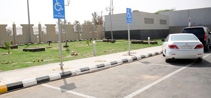 حيث تم توفير مواقف للمعاقين مقابل قسم العلاج الطبيعي والعيادات الخارجية، وأمام قسم الإسعاف والطوارئ من أجل خدمة هذه الفئة الغالية.