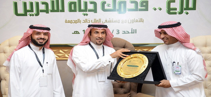 دشن مدير جامعة المجمعة الدكتور خالد بن سعد المقرن الحملة الوطنيَّة للتبرع بالدم تحت شعار "تبرع فدمك حياة للآخرين" وبهذه المناسبة أقيم حفل حضره مدير مستشفى الملك خالد بالمجمعة بالنيابة الأستاذ محمد بن صالح المسند وعدد من وكلاء الجامعة وعمداء الكليات والعمادات المساندة.