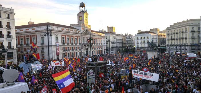 - متظاهرون مؤيدون للجمهورية يحملون أعلاماً وسط مدريد محتجين على الحكم الملكي الإسباني بعد تنازل الملك خوان كارلوس لابنه الأمير فيلب ... أ ف ب