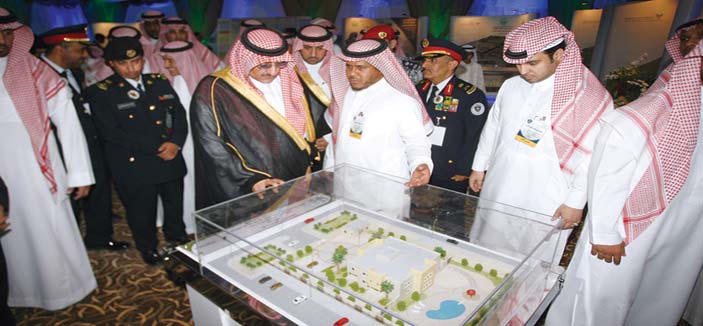 بعد ذلك توجه صاحب السمو الملكي الأمير محمد بن نايف بن عبد العزيز إلى مقر مشروع خادم الحرمين الشريفين لتطوير المقرات الأمنية، واطلع سموه على نماذج مشروعات كلية الملك فهد الأمنية التي اشتملت على سكن القائد ونائبه وسكن الضباط والمدارس وسكن الطلبة وميدان الاستعراض العسكري.