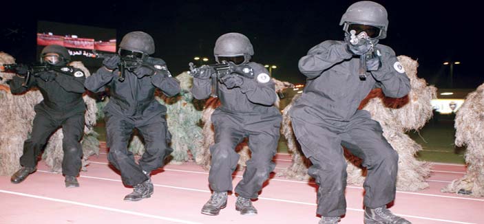 بعدها شاهد سمو الأمير محمد بن نايف بن عبد العزيز والحضور عرضاً لمهارات الاشتباك والتخلص والسيطرة والمهارات القتالية وفك الرهائن أثناء الاقتحام، ومهارات الدفاع الأساسية وحركات الهجوم والدفاع بأوضاع مختلفة.