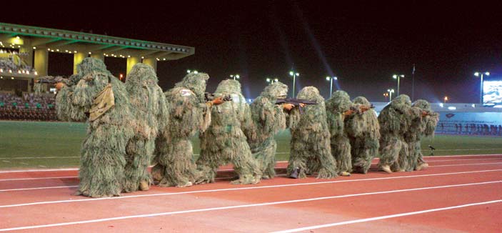 كما شاهد سموه الهرولة الخاصة وفصيل التعايش مع الظروف والأماكن المختلفة، وعرضاً لمهارات الرماية بأوضاع وطرق مختلفة تظهر مدى ما توصل إليه الخريجون من مهارة في الرماية في جميع الظروف والأوضاع.