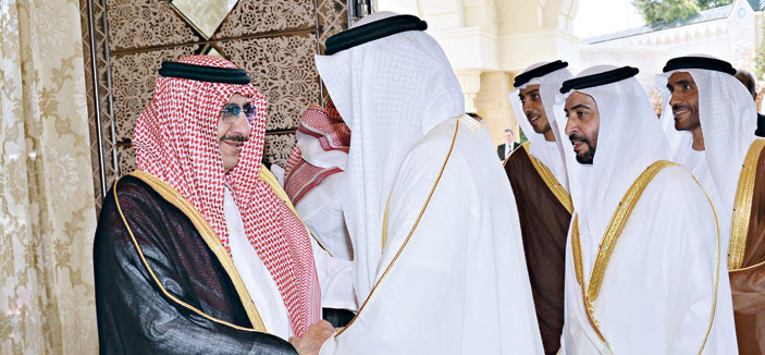 وعند وصول سموه إلى مقر خادم الحرمين الشريفين كان في استقباله أصحاب السمو الملكي الأمراء وأصحاب المعالي الوزراء وعدد من المسئولين.