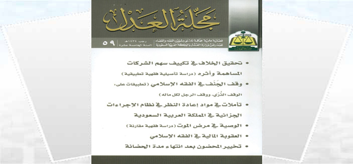 اشتمل العدد (59) من مجلة العدل على عدد من البحوث:
