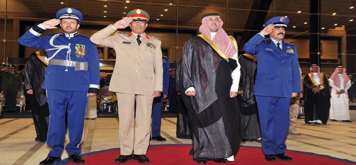 وكان في استقبال سموه لدى وصوله مقر الحفل معالي رئيس هيئة الأركان العامة الفريق الأول الركن عبد الرحمن بن صالح البنيان، ومعالي نائب رئيس هيئة الأركان العامة الفريق الركن فياض بن حامد الرويلي، ومعالي قائد القوات الجوية الفريق الركن محمد بن أحمد الشعلان، وقائد كلية الملك فيصل الجوية اللواء الطيار الركن عبد الله بن محمد القرني.
