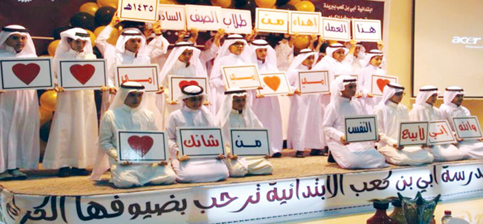 أقامت مدرسة أبي بن كعب الابتدائية ببريدة حفلاً لتخريج طلاب الصف السادس الابتدائي تحت إشراف الأستاذ عبدالله الصقيه وبحضور الشيخ صالح الخضيري ومساعد مدير مكتب تعليم شرق بريدة أ. خالد الرشيد والدكتور علي المزيد وبعض أولياء أمور الطلاب.