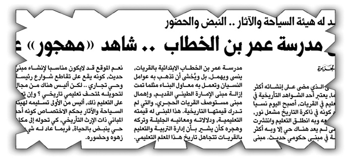 وجاء هذا التعليق من الرويلي، خلال اتصال مع مدير مكتب «الجزيرة»، وذلك عقب نشر الصحيفة لتقرير ما آلت له مباني مدرسة عمر بن الخطاب. وأوضح الرويلي، أن قصر كاف «الشعلان» وقصر «الحواسي» بعين الحواس وقصر «الإمارة» بالحديثة، أدرجت جميعها ضمن مشروعات الهيئة للترميم والتأهيل، وقد سلمت هذه المواقع للمقاول الذي تم ترسيتها عليه لمباشرة العمل.