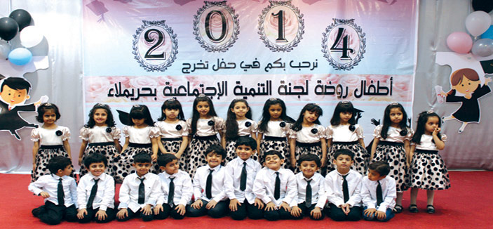 اختتمت روضة أطفال لجنة التنمية الاجتماعية بمحافظة حريملاء التابعة لوزارة الشؤون الاجتماعية أنشطتها السنوية، حيث أقيم حفل تخريج أطفال الدفعة الخامسة والعشرون، تخلل الحفل نماذج من قراءات الأطفال للقرآن الكريم ثم كلمة لمديرة الروضة الأستاذة خلود الهاجري رحبت فيها بالحاضرات وشكرت أمهات الأطفال على تعاونهن وتواصلهن مع الإدارة وهنأتهن، وشكرت جميع منسوبات الروضة من معلمات وإداريات على جهودهن طوال العام الدراسي، بعد ذلك ألقت الأستاذة خلود الزومان والدة الطفل أنس المزيعل كلمة نيابة عن أمهات الأطفال شكرت فيها إدارة ومنسوبات الروضة على ما لمسته الأمهات من اهتمام كبير من قبل الروضة على تعليمهن وتنشئتهن للأطفال على الكثير من الأداب والتقاليد والعادات التي علمنا عليها الإسلام وحفظ القرآن.