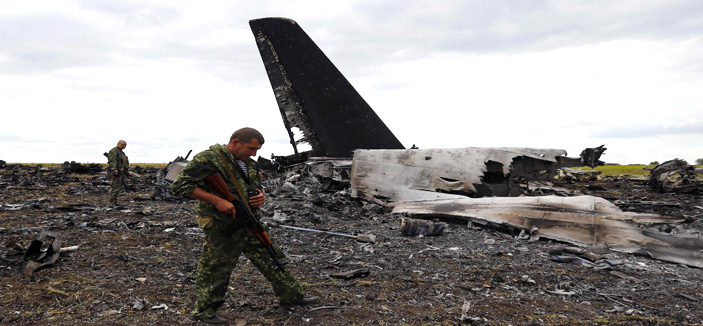 أسقط الانفصاليون الموالون لروسيا طائرة نقل عسكرية أوكرانية أمس السبت؛ ما أدى إلى سقوط 49 قتيلاً، في هجوم ينال من آمال التهدئة التي لاحت خلال الأيام الأخيرة من الاتصالات الأولى بين كييف وموسكو. وهذا أشد هجوم دام منذ بداية حملة مكافحة الإرهاب التي تشنها كييف قبل شهرين، بينما تباحث الرئيس الأوكراني الجديد بيترو بوروشنكو ونظيره الروسي فلاديمير بوتين هذا الأسبوع في محاولة لاحتواء أعمال العنف التي أسفرت عن سقوط 300 قتيل منذ نيسان/ إبريل. ومع بروز خطر وقف إمدادات الغاز الروسي بدءاً من الاثنين؛ الأمر الذي يخشاه الأوروبيون، أعلن وزير الطاقة الأوكراني يوري برودان لفرانس برس السبت أن روسيا أعطت «موافقتها الأولية» على استئناف المفاوضات السبت في كييف. ويأتي إسقاط الطائرة في لوغانسك بعدما تشاور الرئيس الأوكراني الجديد بترو بوروشنكو مع نظيره الروسي فلاديمير بوتين هذا الأسبوع في محاولة لاحتواء أعمال العنف التي خلفت أكثر من 300 قتيل منذ نيسان/ إبريل. وأعرب الاتحاد الأوروبي السبت عن دعمه لجهود بوروشنكو.