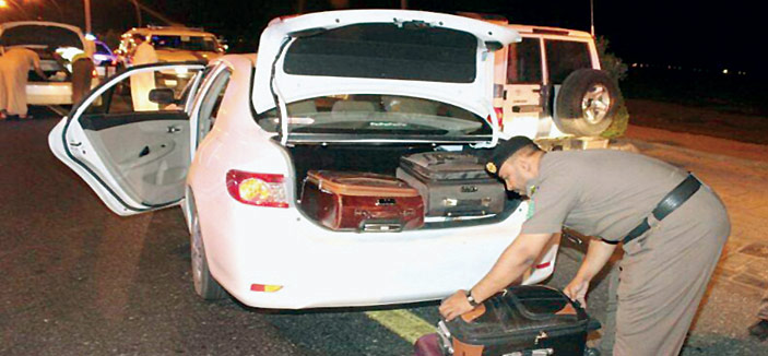 وخلال الحملات التي رافقتها «الجزيرة» رصدت إحدى دوريات الأمن في ساعة متأخرة من الليل سيارة نوع جميس وعند طلب استيقافها رفض قائدها الوقوف وانطلق مسرعاً وتم إبلاغ الفرق الأخرى للتصدي له وبعد ملاحقة استمرت قرابة 40 دقيقة تم السيطرة عليه بوضع نقاط أمنية والقبض عليه وعثر بحوزته على 5 أشخاص يمنيين قدموا للمملكة متسللين وبحوزة قائد المركبة سلاح رشاش وتم تسليمه للجهات المختصة.