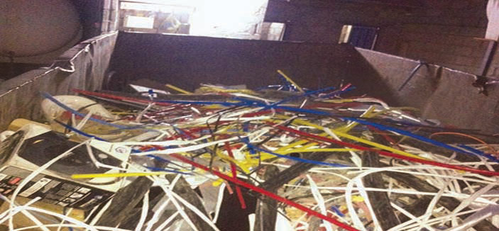 تمكنت الدوريات الأمن بشرطة منطقة الرياض من القبض على عصابة امتهنت سرقة الكيابل النحاسية وتخزينها بمستودع شمال العاصمة الرياض .. وكانت إحدى دوريات الأمن أثناء قيامها بعملها المعتاد في ساعة متأخرة من الليل شاهدت ثلاثة أشخاص يقومون بالقفز من حائط وإغلاقهم باب أحد المستودعات بحي العقيق، وعلى الفور وضع طوق أمني محكم، وتوجيه عدد من الدوريات المساندة وتم دخول المستودع وقبض بداخله على أحد عشر شخصاً من الجنسية الباكستانية، وبتفتيش المستودع تبين أنه يحوى كميات كبيرة من الحديد والأسلاك النحاسية وكذلك برادات وأجهزة إلكترونية ومقصات الحديد واتضح قيامهم بسرقة هذه الأشياء.