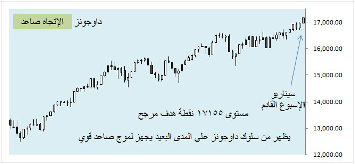 أسبوع شرائي قوي في داوجونز تمكن فيه المشترون من إضافة نمط شرائي عزز من المسار الصاعد وتوج بقمة تاريخية جديدة عند مستوى 16978 نقطة بفارق 22 نقطة عن الحاجز النفسي 17000 نقطة.