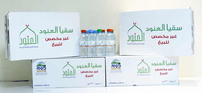 تقوم مؤسسة الأميرة العنود بنت عبدالعزيز بن مساعد بن جلوي آل سعود الخيرية كعادتها كل عام خلال شهر رمضان المبارك بتوزيع (4.000.000) عبوة مياه في عدد من جوامع ومساجد منطقة الرياض وتأتي هذه المبادرة ضمن مبادرات المؤسسة السنوية في تقديم الأعمال الخيرية على مدار العام وخاصة في شهر رمضان المبارك وتم الاتفاق مع مصنع مختص يقوم بتعبئة وإيصال المياه لعدد من الجوامع والمساجد، الجدير بالذكر أن مؤسسة العنود الخيرية ساهمت بإيصال المياه للعديد من المناطق النائية وإقامة عدد من محطات تحلية المياه وحفر العديد من الابار في مناطق المملكة.