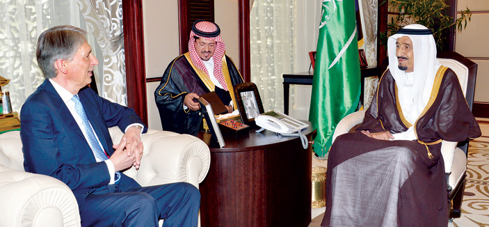 استقبل صاحب السمو الملكي الأمير سلمان بن عبدالعزيز آل سعود ولي العهد نائب رئيس مجلس الوزراء وزير الدفاع في مكتبه بجدة أمس الثلاثاء معالي وزير الدفاع البريطاني فيليب هاموند والوفد المرافق له. وفي بداية الاستقبال رحب سمو ولي العهد بوزير الدفاع البريطاني متمنياً له ومرافقيه طيب الإقامة في المملكة، فيما عبر وزير الدفاع البريطاني عن سعادته بزيارة المملكة ولقائه بسمو ولي العهد. وجرى خلال الاستقبال بحث آفاق التعاون القائم بين البلدين الصديقين وسبل دعمه وتطويره بالإضافة إلى استعراض مستجدات الأوضاع على الساحتين الإقليمية والدولية. حضر الاستقبال معالي رئيس هيئة الأركان العامة الفريق أول ركن عبدالرحمن بن صالح البنيان، واللواء طيار ركن حسين بن محمد العساف، ومدير عام مكتب سمو وزير الدفاع المكلف فهد بن محمد العيسى، والملحق العسكري السعودي في المملكة المتحدة وايرلندا العميد طيار ركن عبدالله بن صالح الزغيبي، فيما حضره من الجانب البريطاني القائم بأعمال سفارة المملكة المتحدة بالرياض ريتشارد ويلداش، ورئيس إدارة الشرق الأوسط وشمال افريقيا في وزارة الخارجية البريطانية ادوارد اوكدن، وكبير مستشاري الدفاع لشؤون الشرق الأوسط سايمون مايال، والملحق العسكري البريطاني في الرياض اليسدير وايلد.