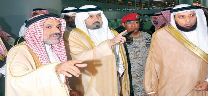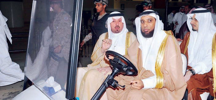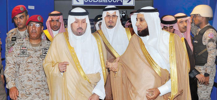 كما توجه سموه إلى منطقة انتظار الحافلات التي تقل المعتمرين والحجاج إلى مكة المكرمة والمدينة المنورة وكذلك منطقة وزن أمتعة المعتمرين والحجاج في صالة المغادرة والع على آلية إنهاء إجراءات أمتعة الركاب مستمعاً إلى شرح موجز من قبل مشغل صالات الحج والعمرة والخدمات الأرضية . عقب ذلك توجه سموه إلى منطقة جوازات المغادرة والتفتيش الأمني وإدارة التشغيل في مجمع صالات الحجاج بعد التحول من نمط التشغيل الحكومي إلى الاستثمار في بناء وتشغيل مرافق المطار من قبل القطاع الخاص الذي قطعت فيه الهيئة العامة للطيران المدني شوطا كبيرا في السنوات الأخيرة الماضية.