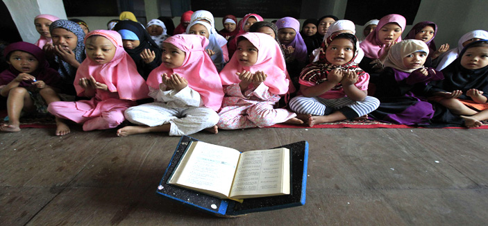 - أطفال حلقات تحفيظ القرآن يرفعون أيديهم بالدعاء في أحد المساجد بالفلبين.. (رويترز)