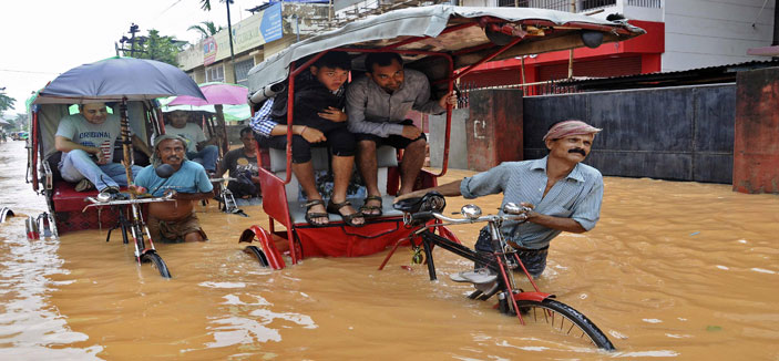 - رجل هندي يجر عربة على طريق أغرقته الأمطار في الولاية الهندية الشمالية... (رويترز)
