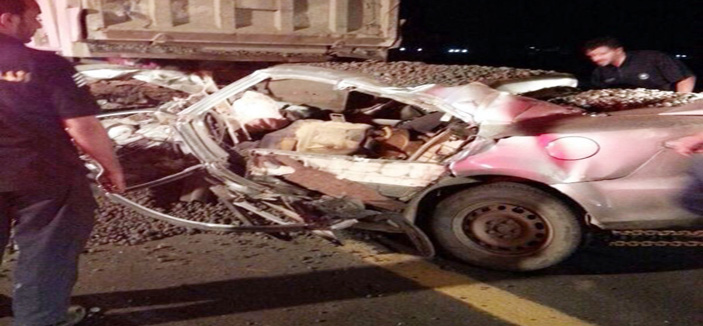 وبعد وصول الفرقة الإسعافية للموقع تبين أن الحادث عبارة عن اصطدام سيارة من نوع ميتسوبيشي لانسر يستقلها شخصين بشاحنة محملة بالخرسان.