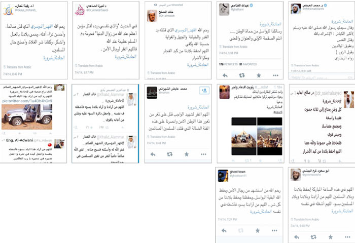 وعبر المغردون على موقع (تويتر) عن استنكارهم لهذا الاعتداء الذي يستهدف أمن واستقرار الوطن والمواطن في هذه البلاد الطاهرة، معربين عن اعتزازهم برجال الأمن والدور البطولي الذين يقومون به في حماية حدود الوطن واليقظة التي يبدونها في كشف المحاولات الارهابية الخبيثة التي تستهدف النيل مما تنعم به بلادنا الطاهرة من أمن واستقرار في ظل قيادتها الحكيمة ويقظة رجالها البواسل الذين يقفون سدا منيعا في وجه كل من تسول له نفسه المساس بأمن واستقرار الوطن. وسأل المغردون الله الرحمة والمغفرة لشهيد الوطن الذي بذل نفسه وهو صائم حماية للوطن وصدا لأيادي الظلم والعدوان.
