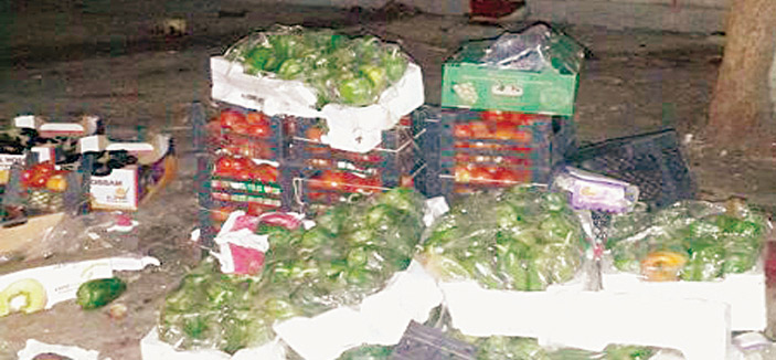 حيث صادرت (1400) نوع من الخضروات والفواكه التي يتم بيعها بشكل عشوائي بعد هروب أصحابها المخالفين وتم تسليمها للجمعيات الخيرية.