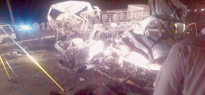 تفحم ثلاثة أشخاص بعد احتراق سيارتهم مساء أمس الأول إثر حادث مروري شنيع وقع لهم على مدخل قرية الملقا بعد تعرض مركبتهم من نوع كورلا للصدم بسيارة أخرى يستقلها مقيم وجها لوجه على طريق الملقا مركز العمار نتج عن الحادث تفحمهم داخل السيارات وتم نقل أحدهم لمستشفى المذنب العام وتوفي على الفور بعد تلقي الإسعافات اللازمة.