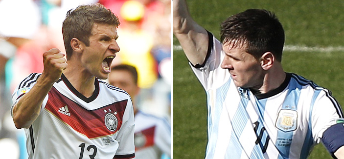 عندما تلتقي ألمانيا مع الأرجنتين في نهائي بطولة كأس العالم لكرة القدم بالبرازيل اليوم الأحد ستشهد هذه المباراة مواجهة من نوع آخر بين المهاجم الأرجنتيني ليونيل ميسي والمهاجم الألماني توماس مولر على لقب هداف البطولة وجائزة الحذاء الذهبي، وإن كان لا يمكن استبعاد هداف بطولات كأس العالم على مر الزمان والفائز السابق بالحذاء الذهبي ميروسلاف كلوزه من هذا الصراع. ويأمل كلوزه بأن يلعب أمام الأرجنتين منذ بداية المباراة؛ فهذا الأمر سيمكنه من مساعدة زميله مولر على اعتلاء صدارة قائمة هدافي مونديال البرازيل؛ وبالتالي الفوز بجائزة الحذاء الذهبي لهذه البطولة. كما أنه يستطيع في الوقت نفسه مساعدة المنتخب الألماني على إحراز لقب المونديال للمرة الرابعة في تاريخه باستاد «ماراكانا» الشهير بمدينة ريو دي جانيرو.