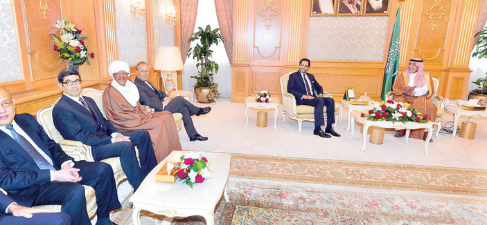 استقبل صاحب السمو الملكي الأمير مقرن بن عبدالعزيز آل سعود ولي ولي العهد النائب الثاني لرئيس مجلس الوزراء المستشار والمبعوث الخاص لخادم الحرمين الشريفين - حفظه الله- في قصر السلام بجدة أمس، عميد السلك الدبلوماسي لدى المملكة سفير جمهورية جيبوتي ضياء الدين بامخرمة يرافقه سفير الجمهورية الفرنسية رئيس المجموعة الأوروبية برتران بوزانسونو وسفير جمهورية السودان رئيس المجموعة العربية عبدالحافظ إبراهيم محمد وسفير جمهورية الأرجنتين رئيس مجموعة أمريكا الجنوبية خايمي سرخيو سيردا وسفير جمهورية الفلبين رئيس المجموعة الآسيوية عز الدين تاجو وسفير أستراليا رئيس مجموعة أوقيانوسيا نيل هاوكينز الذين قدموا للسلام على سمو ولي ولي العهد وتهنئته بشهر رمضان المبارك.