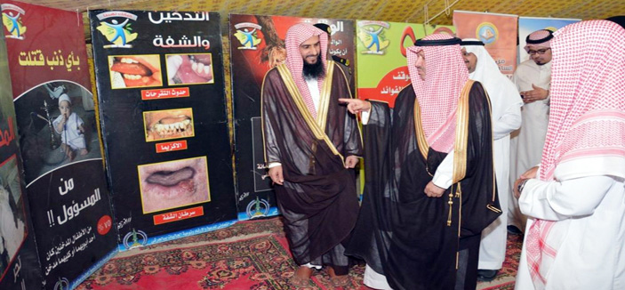 وفور وصوله تجول بالمعرض التوعوي والإرشادي الذي شاركت فيه هيئة الأمر بالمعروف والنهي عن المنكر ومكتب الدعوة والإرشاد وتوعية الجاليات، واستمع إلى شرح مفصل عن محتويات المعرض الذي يضم أكثر من 50 لوحة توعوية عن أضرار التدخين والمخدرات وما ينجُم عنهما من إضرارٍ بالفرد والمجتمع , إلى جانب اللوحات الإرشادية لتحذير الشباب من بعض المخالفات السلوكية.